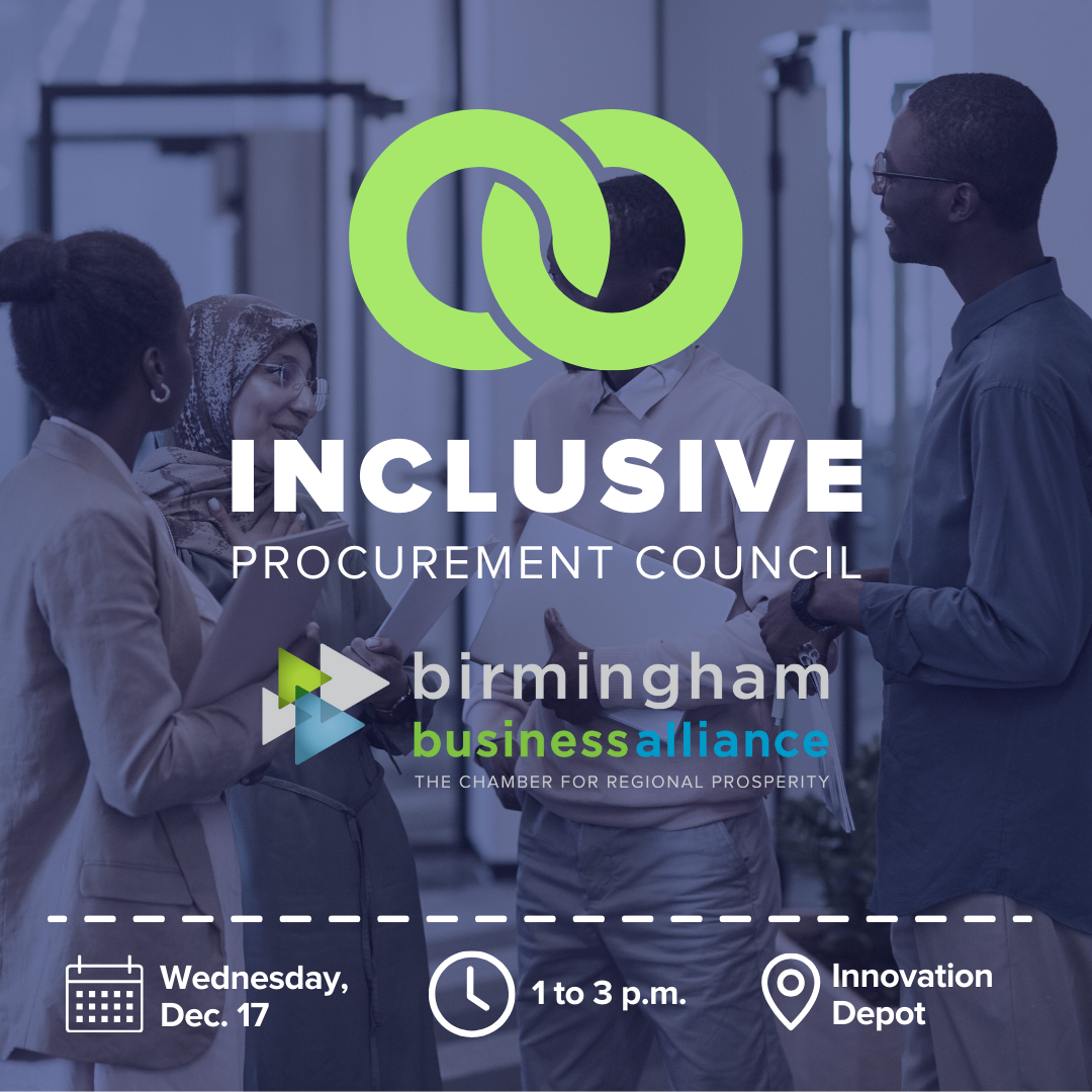On Dec. 17 from 1 to 3 p.m., join us for the gathering of the Inclusive Procurement Council (IPC), a collaborative initiative focused on expanding procurement opportunities for small businesses throughout the Greater Birmingham Region.