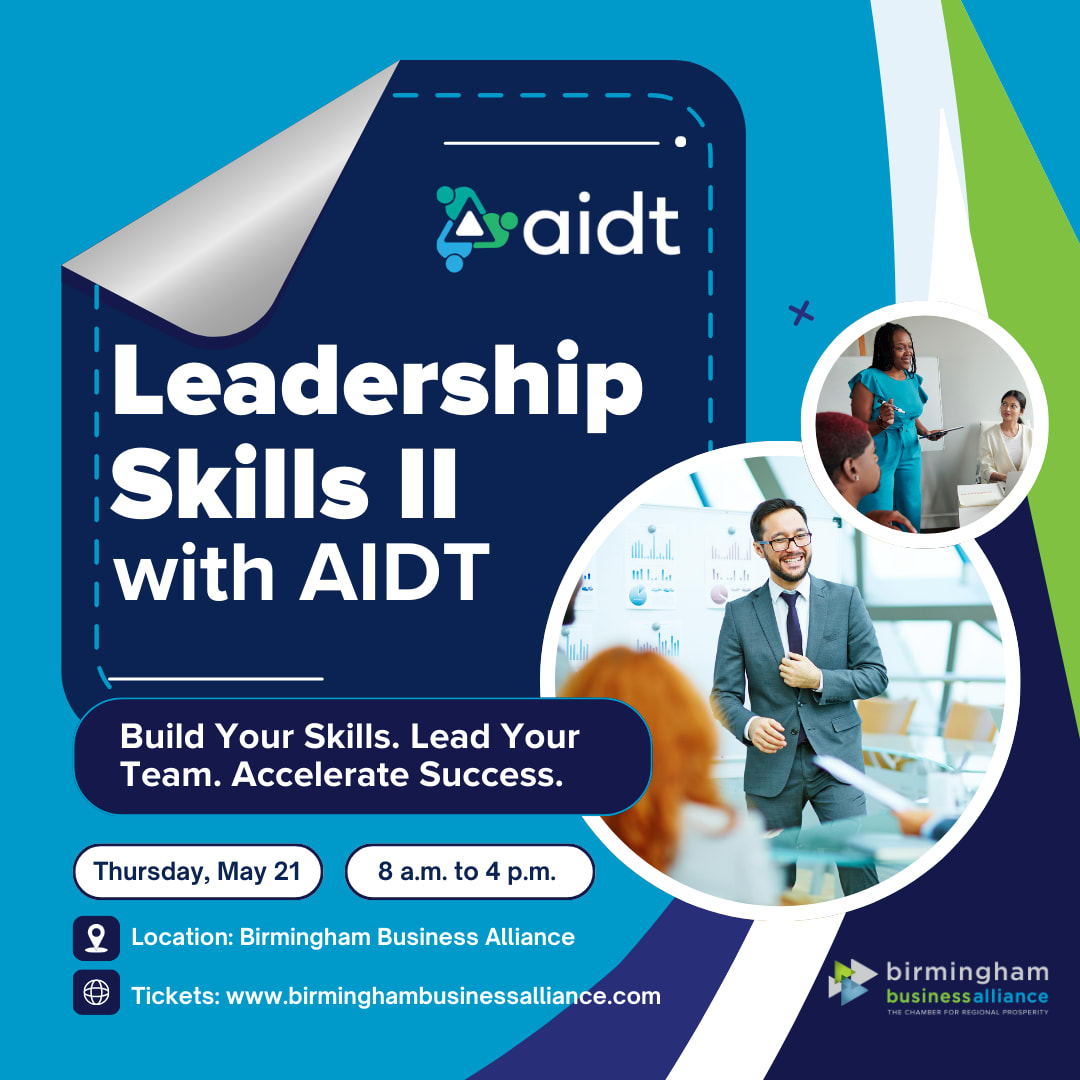 On Thursday, May 21, the Birmingham Business Alliance (BBA), in partnership with the Alabama Workforce Training Center (AIDT), invites you to attend Leadership Skills II with AIDT.